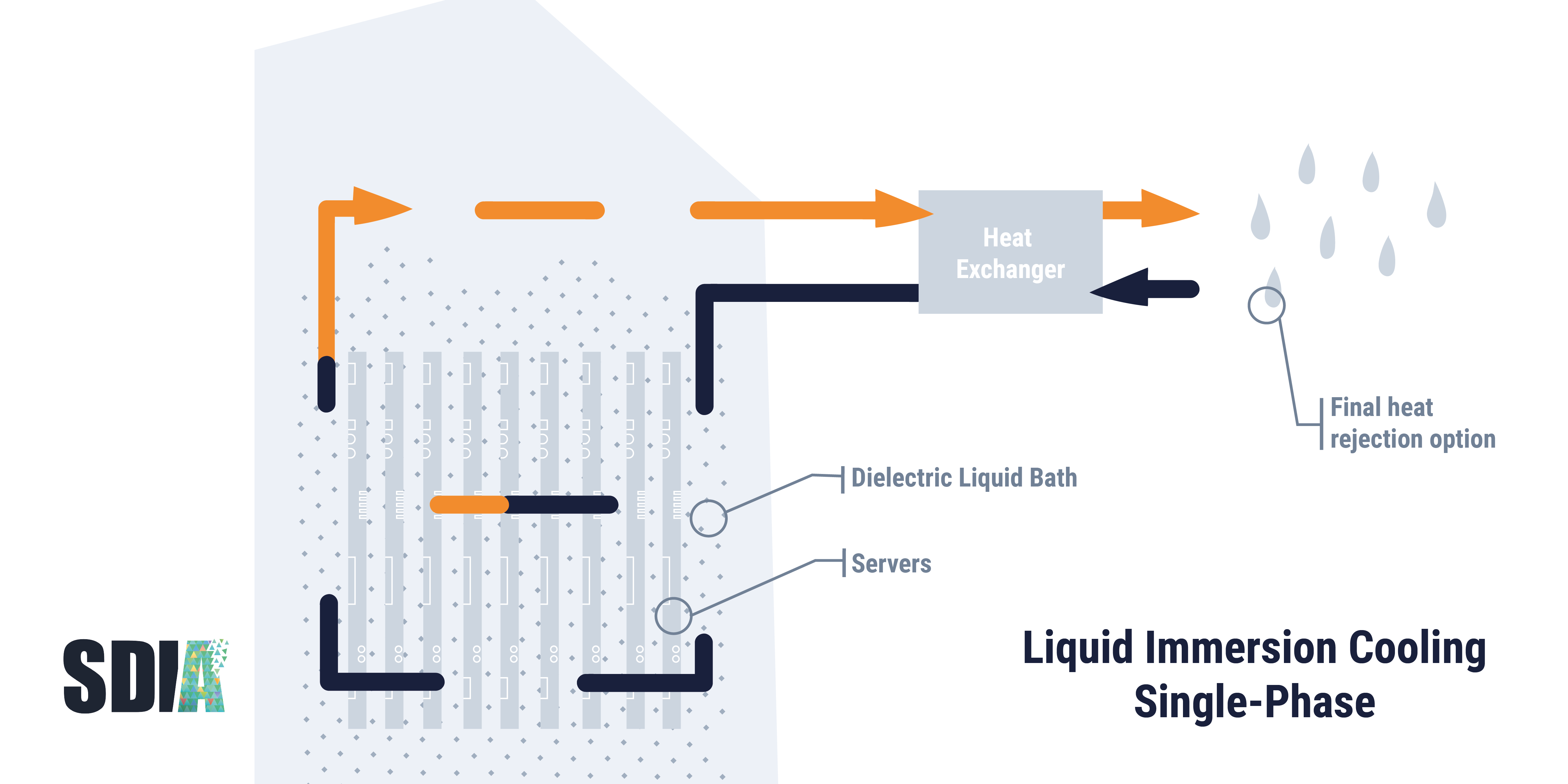 - Liquid immersion cooling is an efficient and sustainable cooling approach that provides new opportunities to utilize excess heat