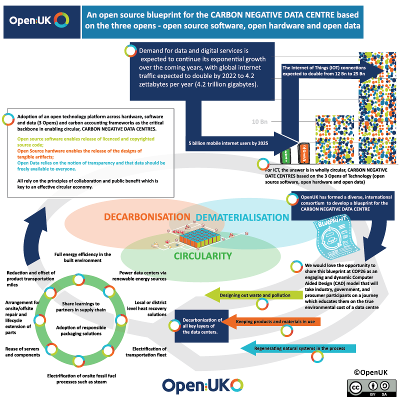 SDIA & OpenUK has formed an international consortium to develop an open source blueprint for the carbon negative data centre. At the time of writing, the consortium includes ITRenew (US), the Open Compute Project (US), the Octopus Energy Centre for Net Zero (UK), the Scotland 5G Centre (UK), the Sustainable Digital Infrastructure Alliance (DE) and ORCA Computing (UK).